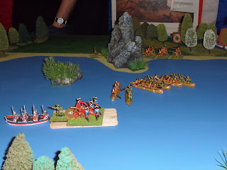 NO!!!! Paul had cunningly placed a warband on the Lake edge,and shot the raft,escort and gun to pieces!