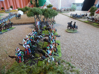 In this shot,Paul has instigated a cavalry melee,against my elite Mamalukes and Guard Chasseurs-the man's a fool!!!-however it must be said,he did quite well against my elites(in other words he gave them a right old "hiding!")-but dice throwing can change a lot in a game,and later on I managed to give him a right old "hiding"-wonderful wargaming!!